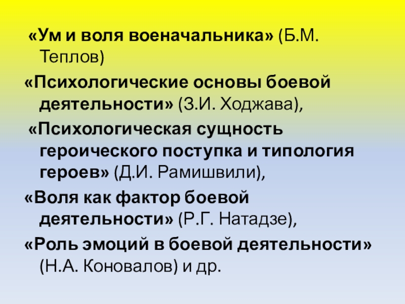 «Воля как фактор боевой деятельности» (Р.Г. Натадзе),