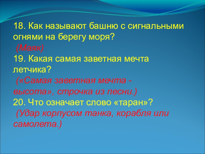 Слайд 818. Как называют башню с сигнальными огнями на берегу моря?