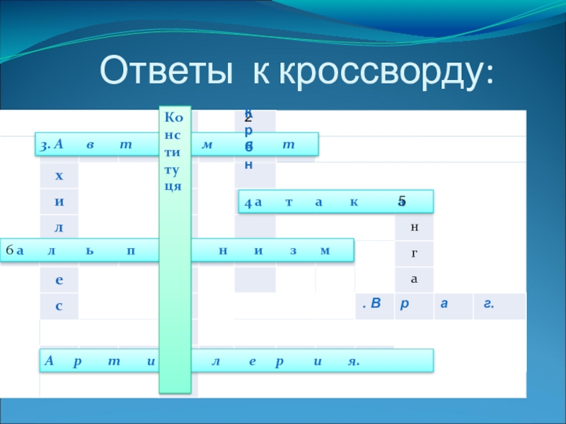 Слайд 29Ответы к кроссворду:
