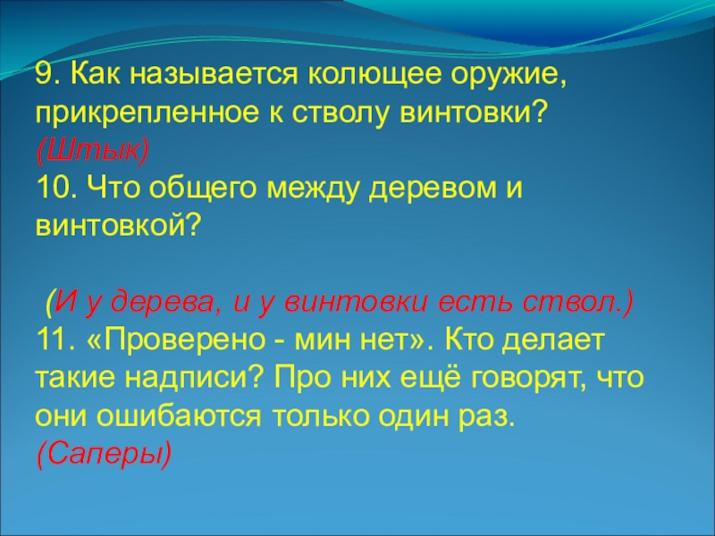 Слайд 59. Как называется колющее оружие, прикрепленное к стволу винтовки?