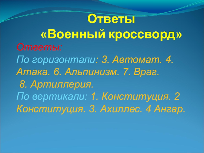 Слайд 20«Военный кроссворд»