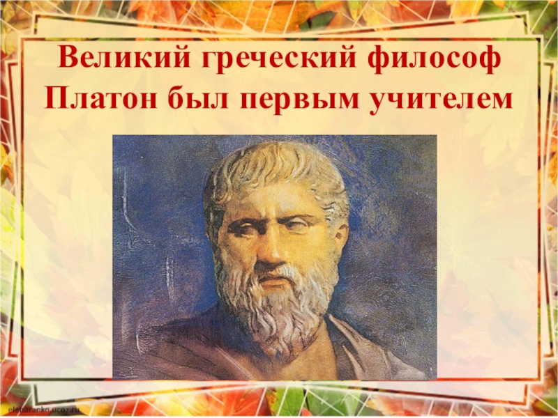 Слайд 9Великий греческий философ Платон был первым учителем