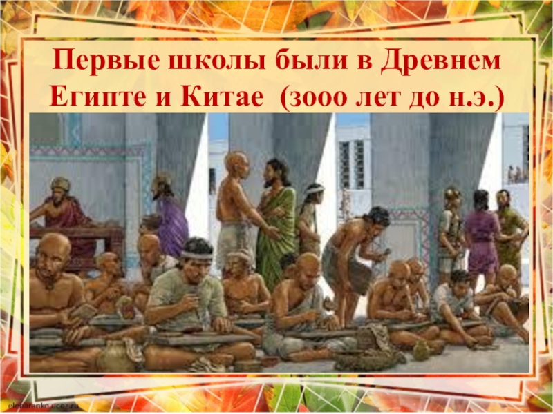 Слайд 7Первые школы были в Древнем Египте и Китае (зооо лет до