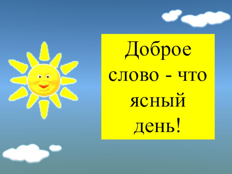 Презентация, доклад к воспитательному мероприятию Доброе слово, что ясный день (1 класс)