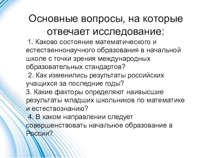 Основная цель исследования — сравнить между собой качество математического и естественнонаучного образования в начальной и средней школе