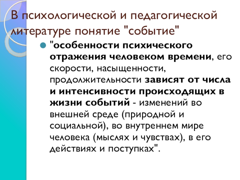 Слайд 16В психологической и педагогической литературе понятие "событие"