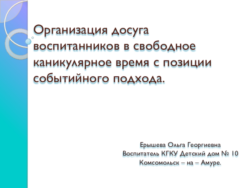 Слайд 1Организация досуга воспитанников в свободное каникулярное время с позиции событийного подхода.