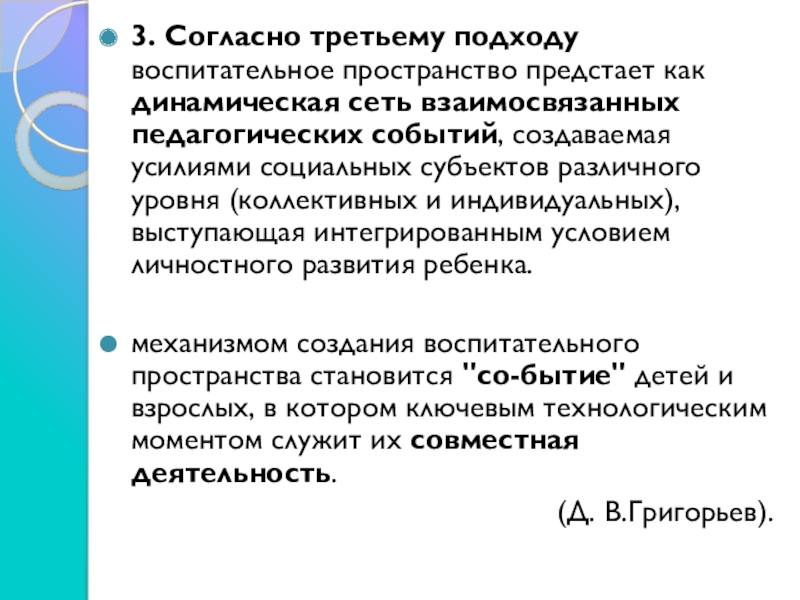 Слайд 153. Согласно третьему подходу воспитательное пространство предстает как динамическая сеть взаимосвязанных
