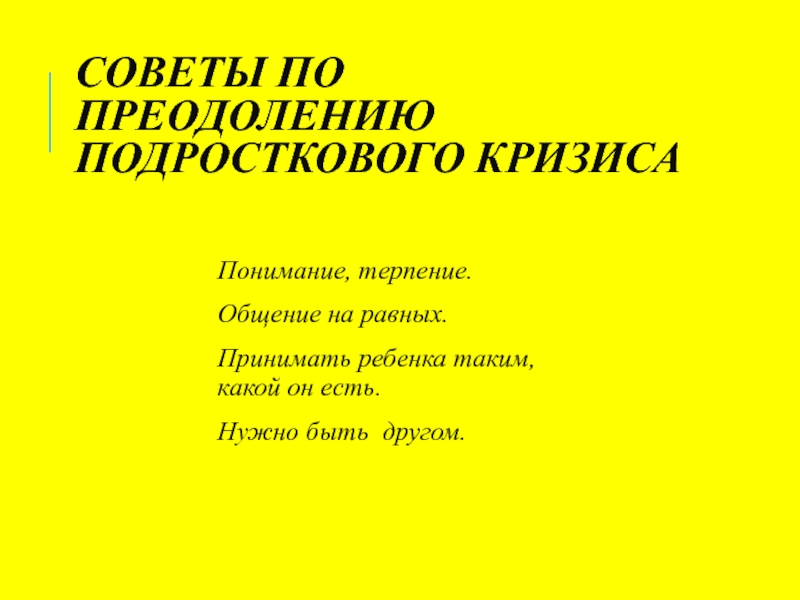 Слайд 11 СОВЕТЫ ПО ПРЕОДОЛЕНИЮ ПОДРОСТКОВОГО КРИЗИСА