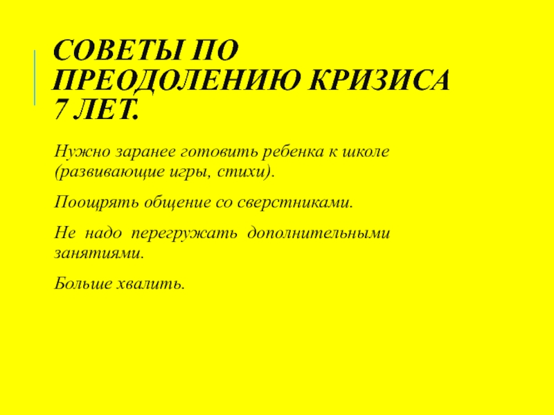 Слайд 9СОВЕТЫ ПО ПРЕОДОЛЕНИЮ КРИЗИСА 7 ЛЕТ.