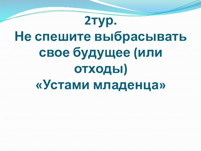 Слайд 202тур. Не спешите выбрасывать свое будущее (или отходы) «Устами младенца»