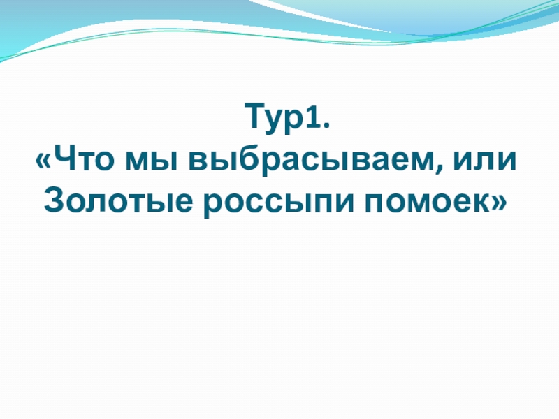 Слайд 13 Тур1. «Что мы выбрасываем, или Золотые россыпи помоек»
