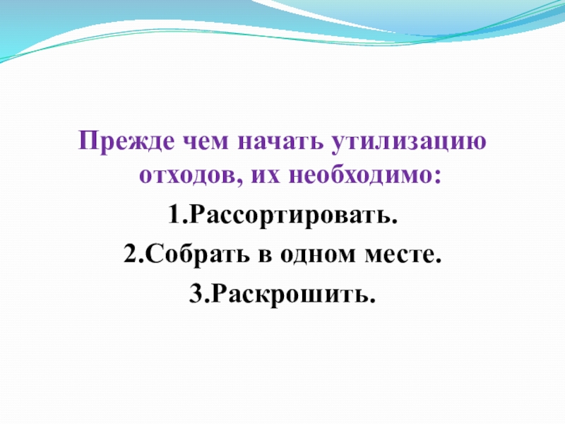 Слайд 15Прежде чем начать утилизацию отходов, их необходимо:
