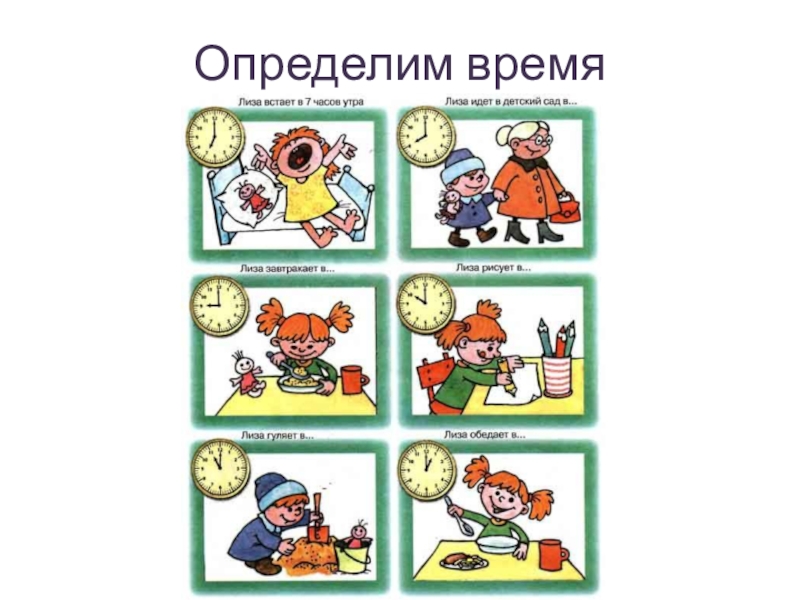 дворе дома или детского сада, школьники учатся и после уроков возвращаются домой, а взрослые тем временем работают. Маленьким детям днем положено немного поспать после обеда, а школьникам постарше сделать уроки.