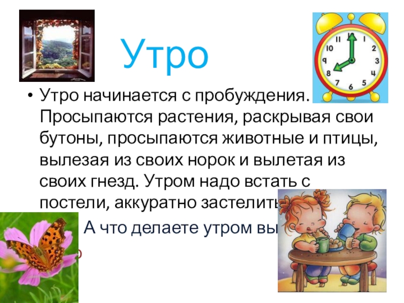 Слайд 8Утро