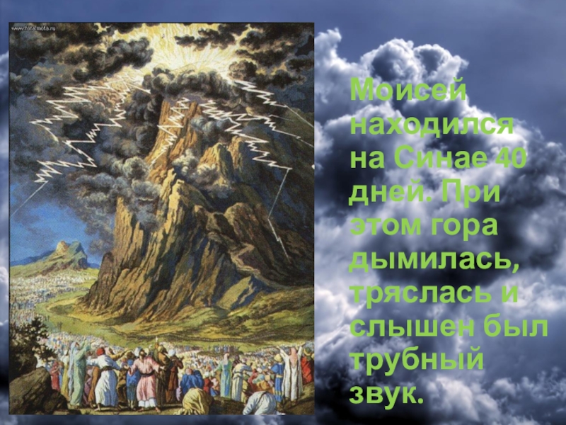 Слайд 2 Моисей находился на Синае 40 дней. При этом гора