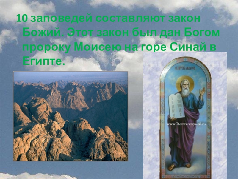 Слайд 3 10 заповедей составляют закон Божий. Этот закон был дан Богом