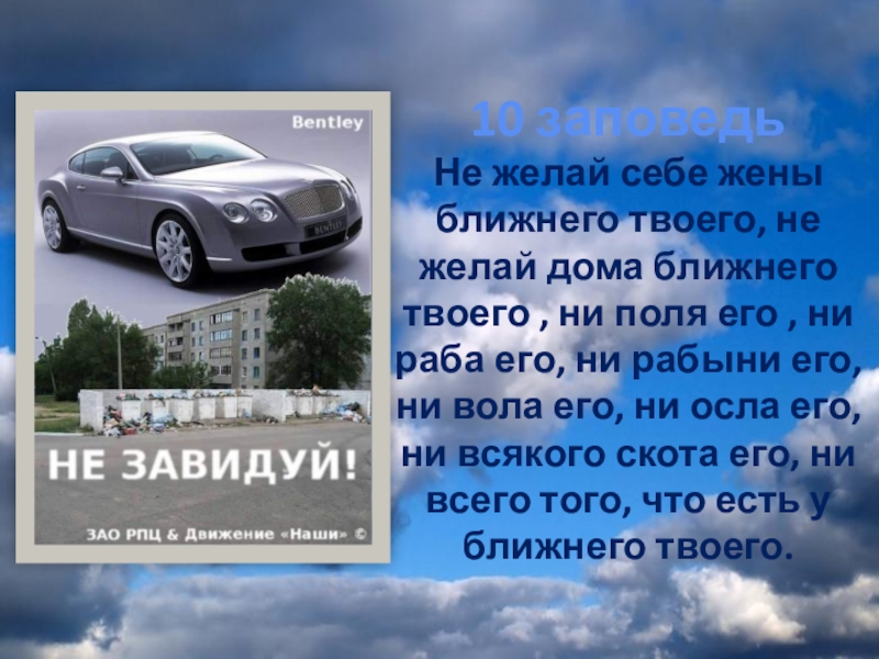 Слайд 1410 заповедь Не желай себе жены ближнего твоего, не желай дома ближнего