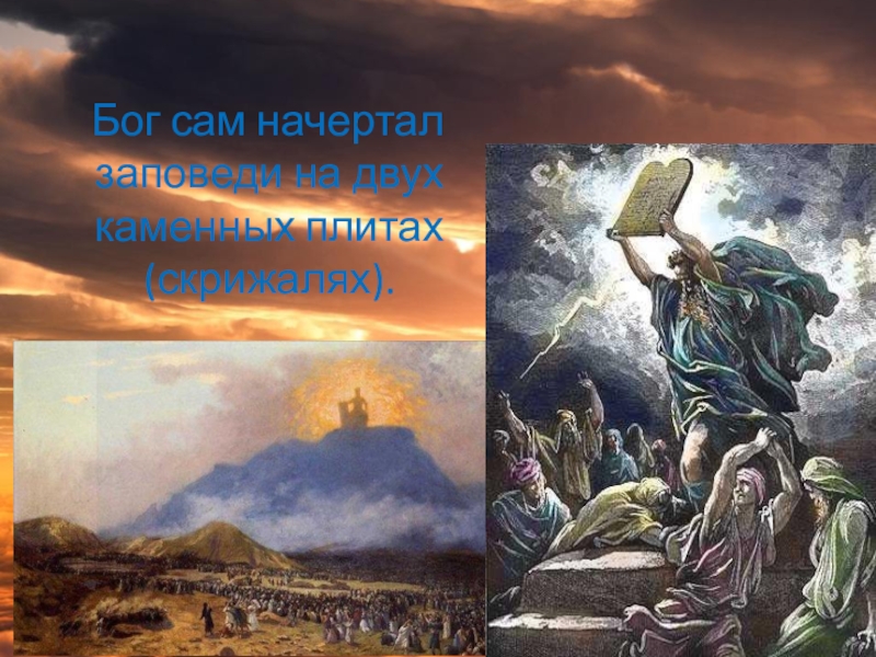 Слайд 4 Бог сам начертал заповеди на двух каменных плитах (скрижалях).