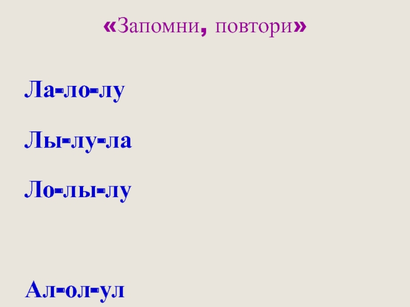 «Запомни, повтори» Ла-ло-луЛы-лу-лаЛо-лы-луАл-ол-улИл-ел-ялАла-оло-улу