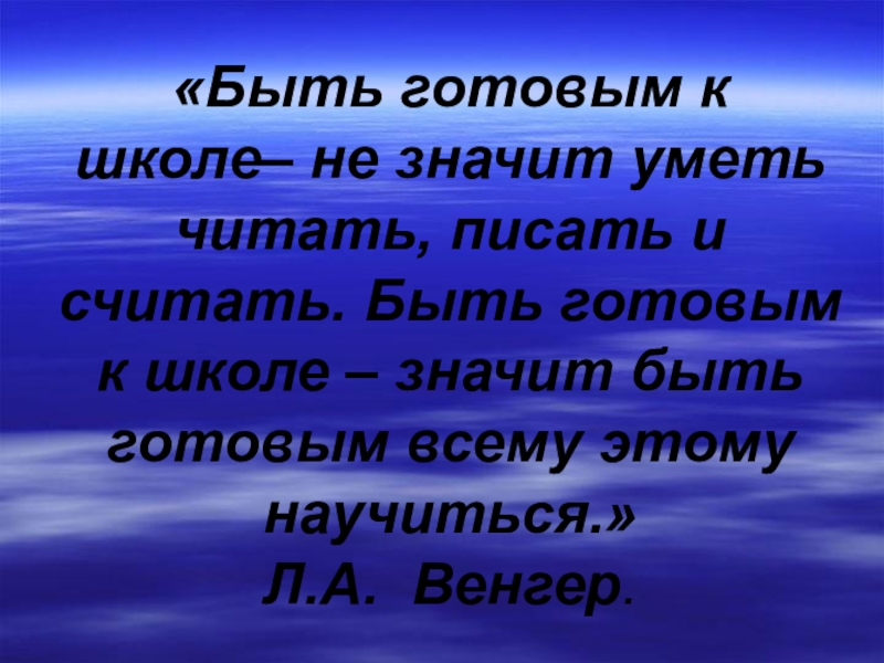 Слайд 10«Быть готовым к школе– не значит уметь читать, писать и считать.
