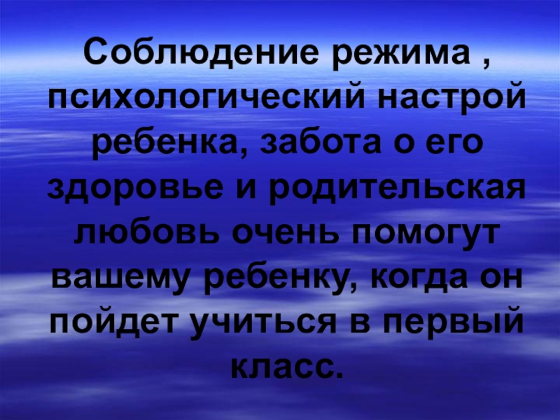 Слайд 9Соблюдение режима , психологический настрой ребенка, забота о его здоровье и