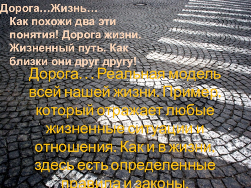Дорога…Жизнь… Как похожи два эти понятия! Дорога жизни. Жизненный путь. Как близки они друг другу!