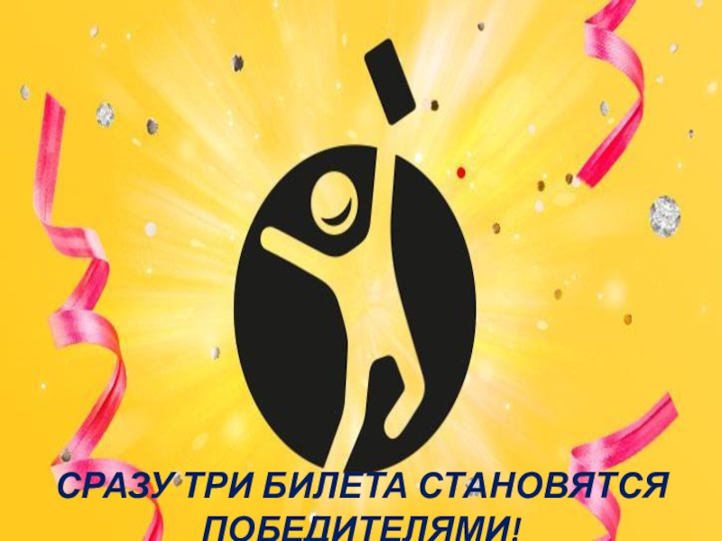Слайд 19СРАЗУ ТРИ БИЛЕТА СТАНОВЯТСЯ ПОБЕДИТЕЛЯМИ!