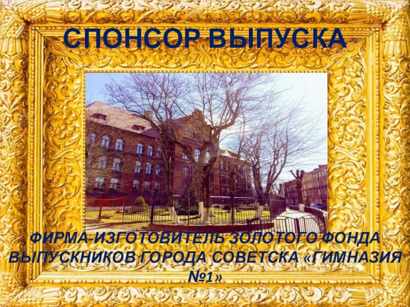 Слайд 16СПОНСОР ВЫПУСКА ФИРМА-ИЗГОТОВИТЕЛЬ ЗОЛОТОГО ФОНДА ВЫПУСКНИКОВ ГОРОДА СОВЕТСКА «ГИМНАЗИЯ №1»