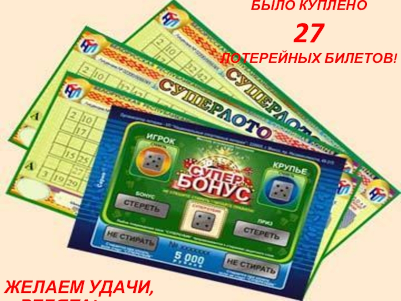 Слайд 8БЫЛО КУПЛЕНО 27 ЛОТЕРЕЙНЫХ БИЛЕТОВ!