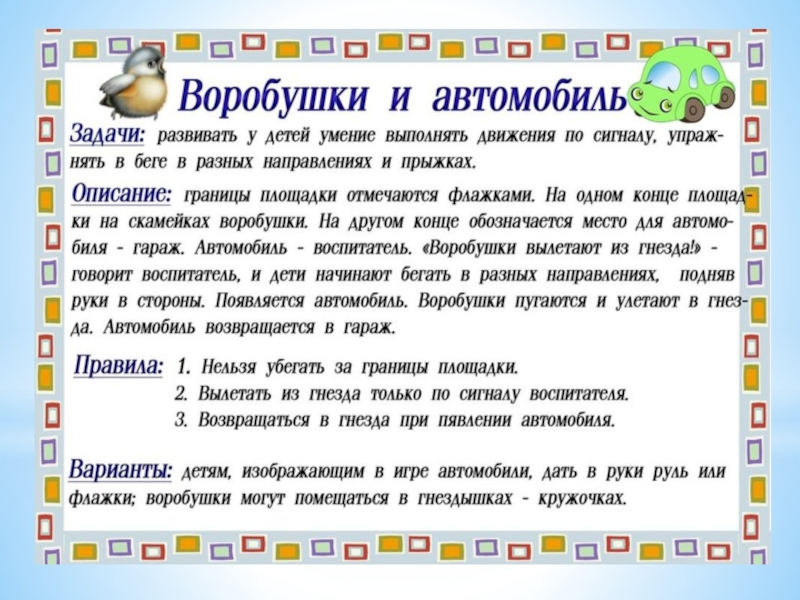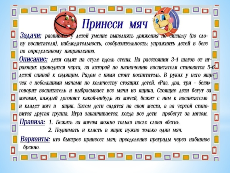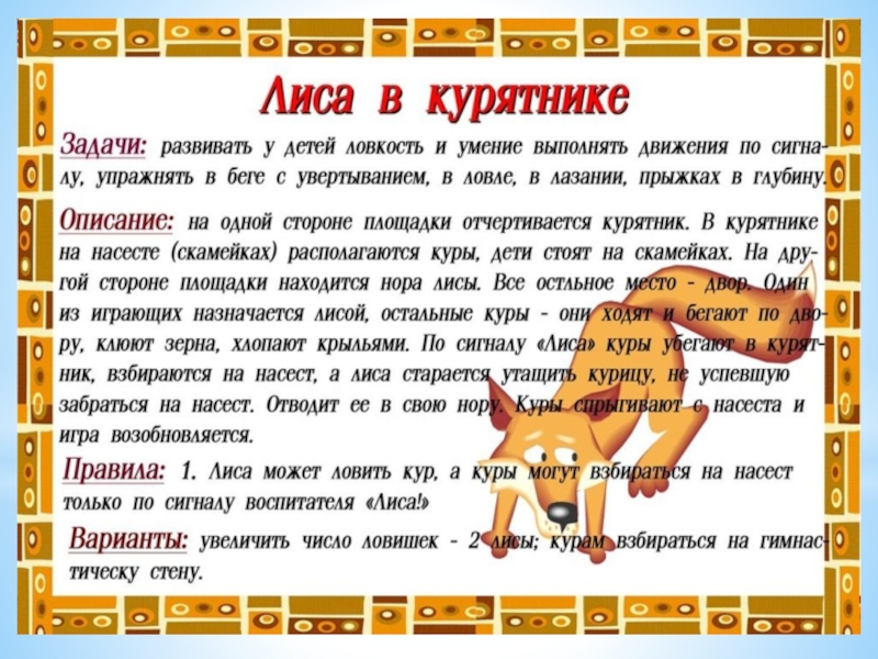 Слайд 1 Картотека подвижных игр с детьми на прогулке