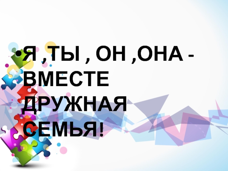 Слайд 20Я ,ТЫ , ОН ,ОНА -ВМЕСТЕ ДРУЖНАЯ СЕМЬЯ!