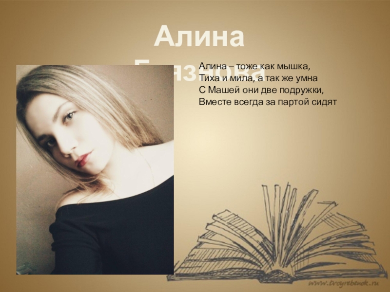 Алина ГрязноваАлина – тоже как мышка, Тиха и мила, а так же умна С Машей они две