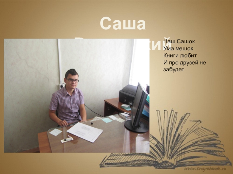 Саша РыжевскийНаш Сашок Ума мешок Книги любит И про друзей не забудет