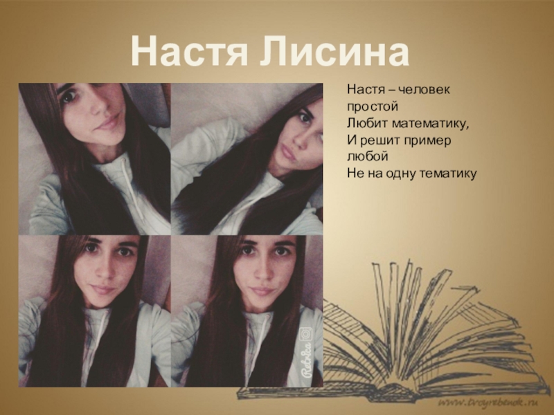 Настя ЛисинаНастя – человек простой Любит математику,И решит пример любойНе на одну тематику