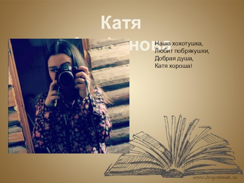 Катя АгафоноваНаша хохотушка, Любит побрякушки, Добрая душа, Катя хороша!
