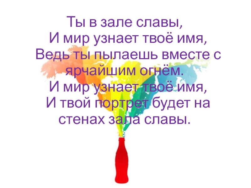Слайд 17Ты в зале славы, И мир узнает твоё имя, Ведь