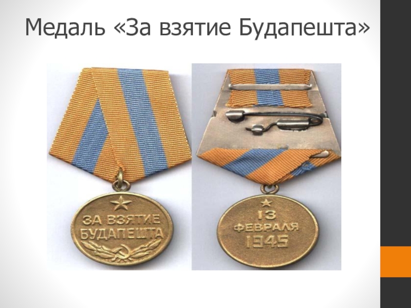 войска освободили город Будапешт. В тяжелых боях за взятие столицы Венгрии, оккупированной немцами, наши войска потеряли свыше 80 тысяч человек. Но советский солдат принес венграм свободу — «И на груди его светилась медаль за город Будапешт».