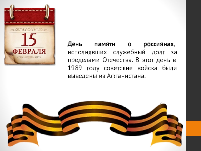 Слайд 2015 февраля 1989 года из Афганистана полностью выведены советские войска. Выводом