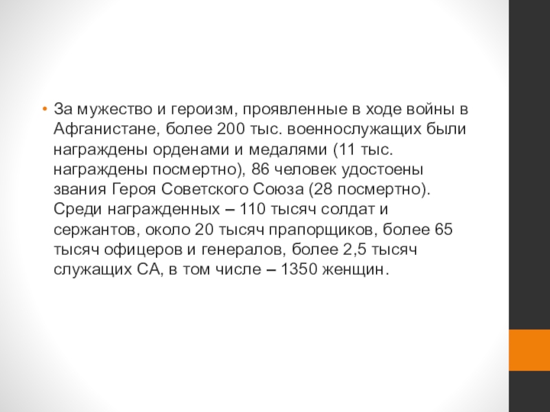 Слайд 22За мужество и героизм, проявленные в ходе войны в Афганистане, более