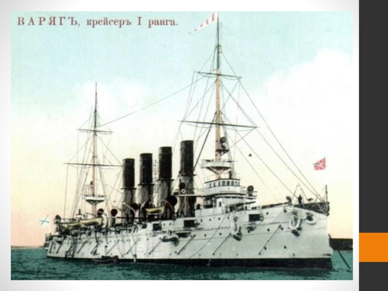 Слайд 10Начало войны легендарный крейсер "Варяг" встретил в нейтральном корейском порту Чемульпо.