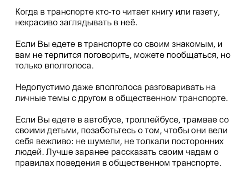Слайд 7Когда в транспорте кто-то читает книгу или газету, некрасиво заглядывать в