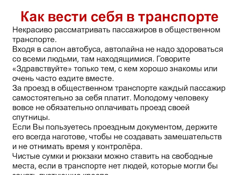 Слайд 2Поездка в общественном транспорте — проверка воспитанности человека