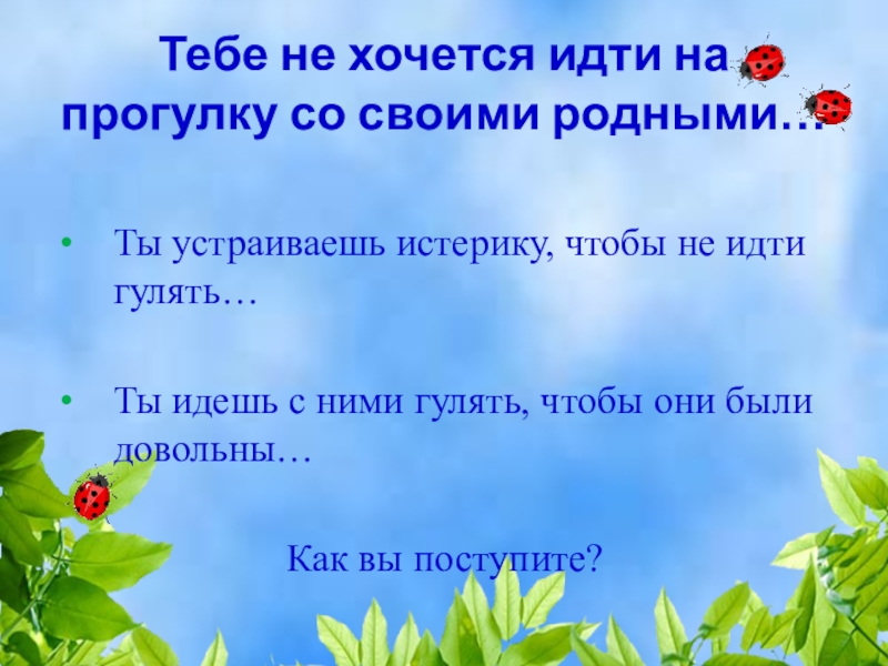 Слайд 10Тебе не хочется идти на прогулку со своими родными…