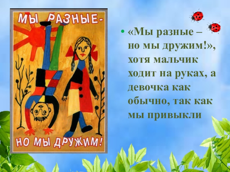 «Мы разные – но мы дружим!», хотя мальчик ходит на руках, а девочка как обычно, так как