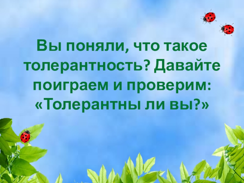 Слайд 7Вы поняли, что такое толерантность? Давайте поиграем и проверим: «Толерантны ли