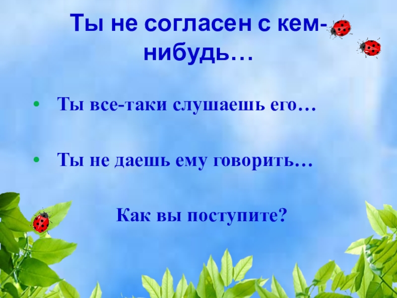 Ты не согласен с кем-нибудь…Ты все-таки слушаешь его…Ты не даешь ему говорить…