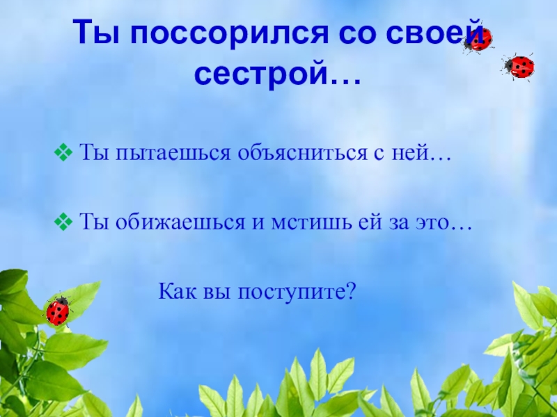 Ты поссорился со своей сестрой…Ты пытаешься объясниться с ней…Ты обижаешься и мстишь ей за это…