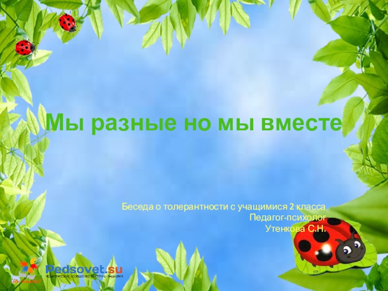 Мы разные но мы вместеБеседа о толерантности с учащимися 2 классаПедагог-психолог Утенкова С.Н.