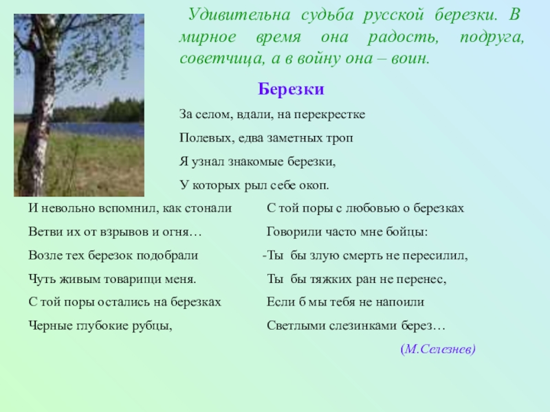 Чем же пахнут березы?.. Березы пахнут Родиной!»